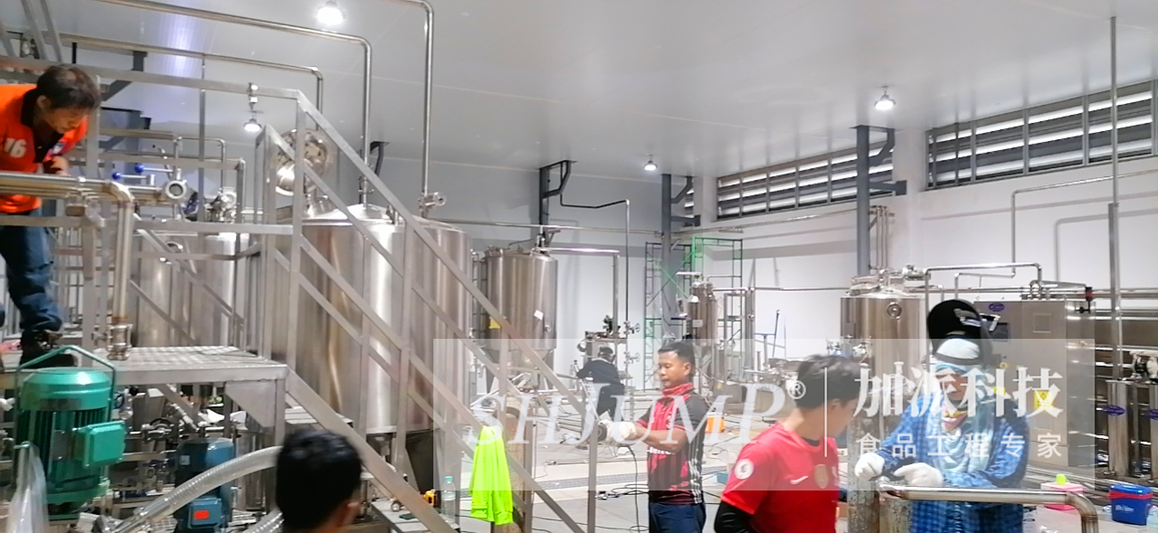 泰國(guó)甘蔗汁飲料加工生產(chǎn)線全線設(shè)備現(xiàn)場(chǎng)安裝調(diào)試中
